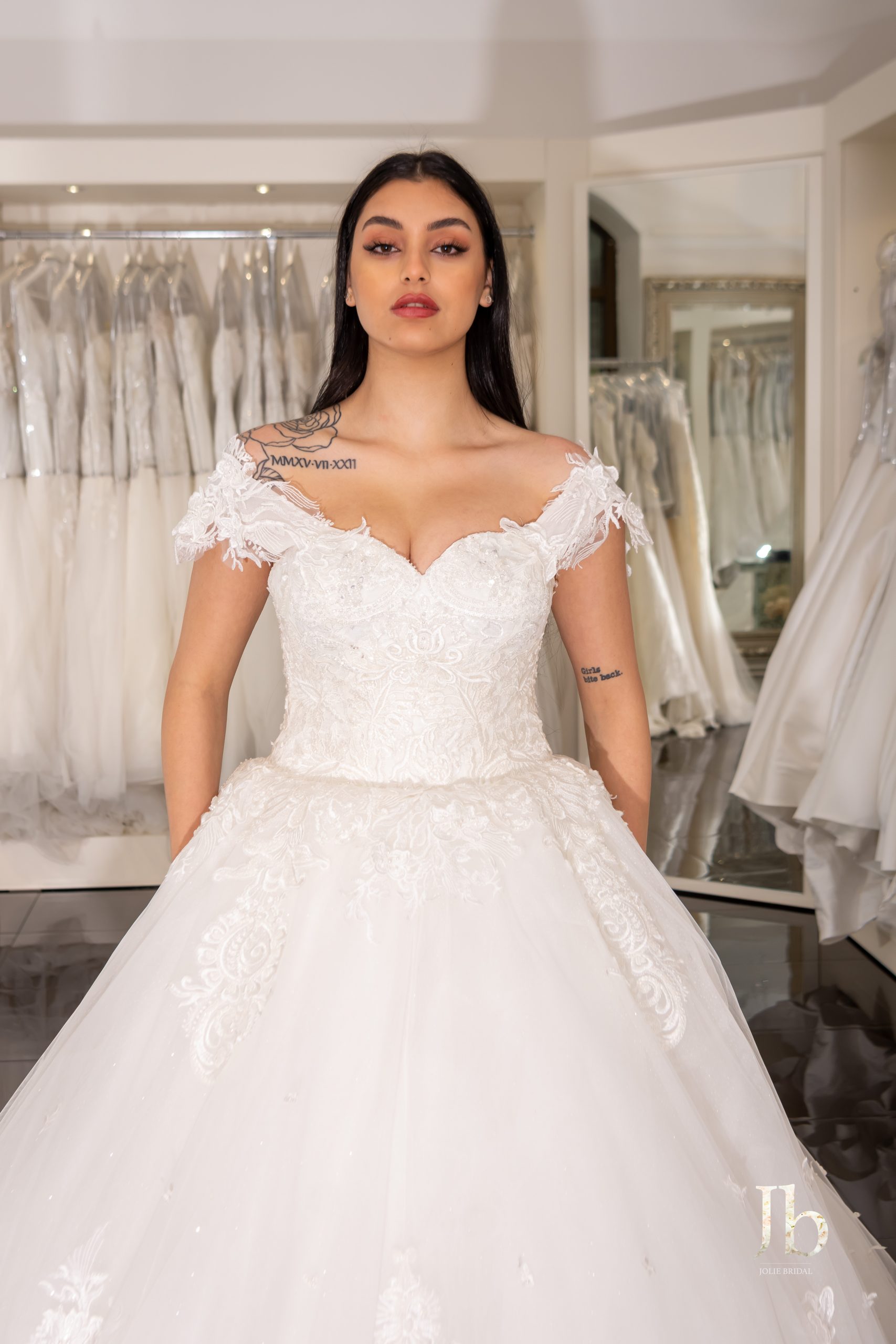 Boka tid på www.joliebridal.se/boka-tid för att prova brudklänningar