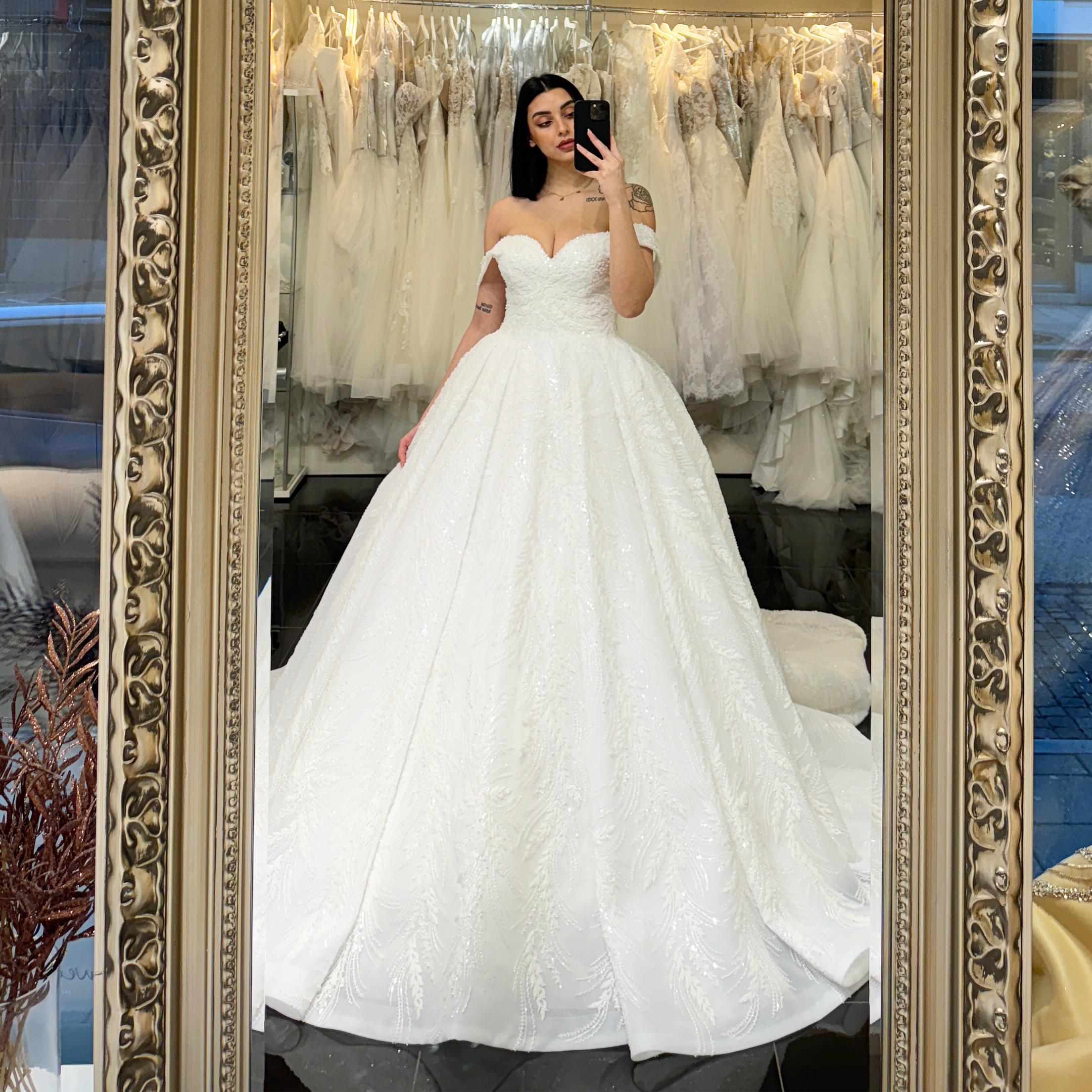 När bruden går nerför altargången i denna extraordinära klänning, omgiven av kärlek och lycka från familj och vänner, blir ögonblicket inte bara ett minne för livet utan även en ikonisk bild av skönhet och elegans. Med varje detalj perfektionerad och varje önskan uppfylld är denna brudklänning en symbol för kärlek, hopp och oändlig möjlighet – precis som varje bruds dröm borde vara