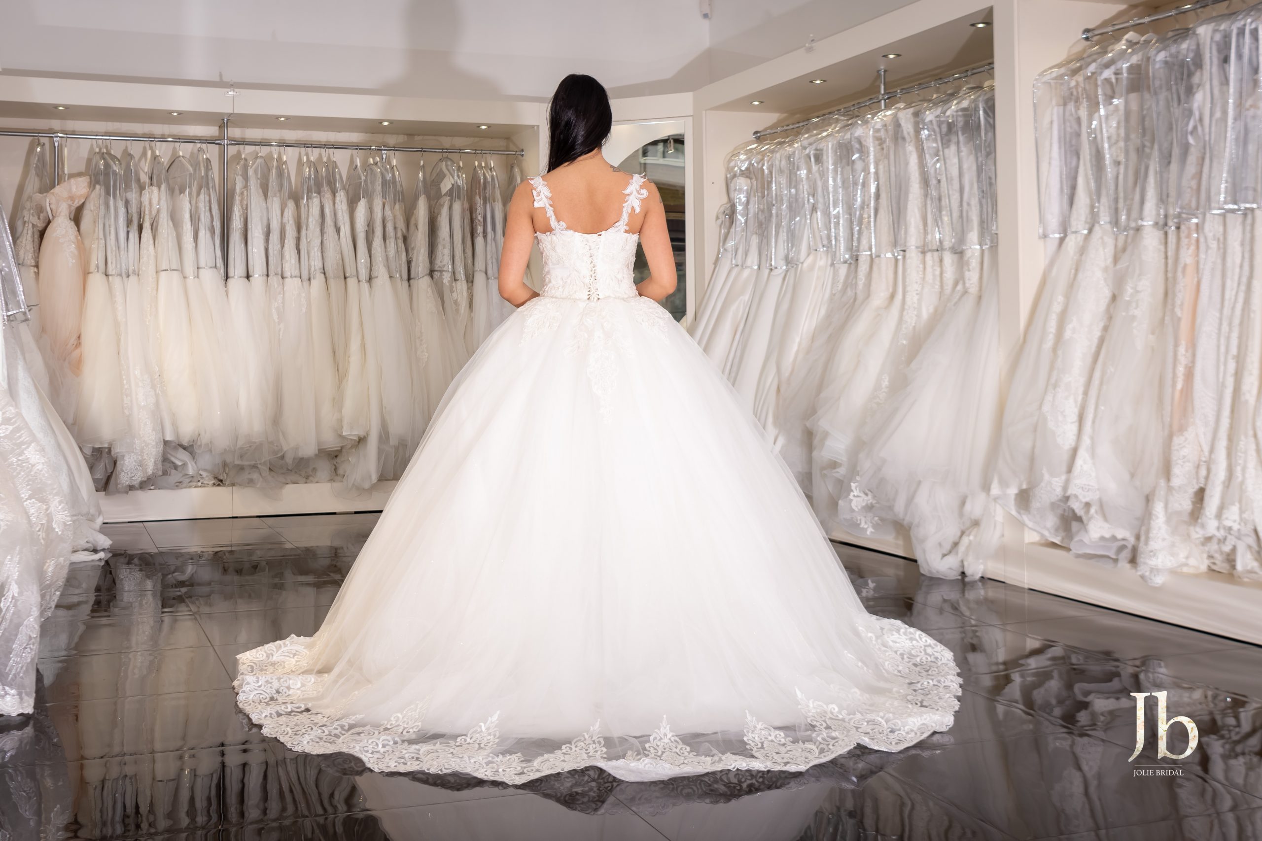 Boka tid på www.joliebridal.se/boka-tid för att prova brudklänningar