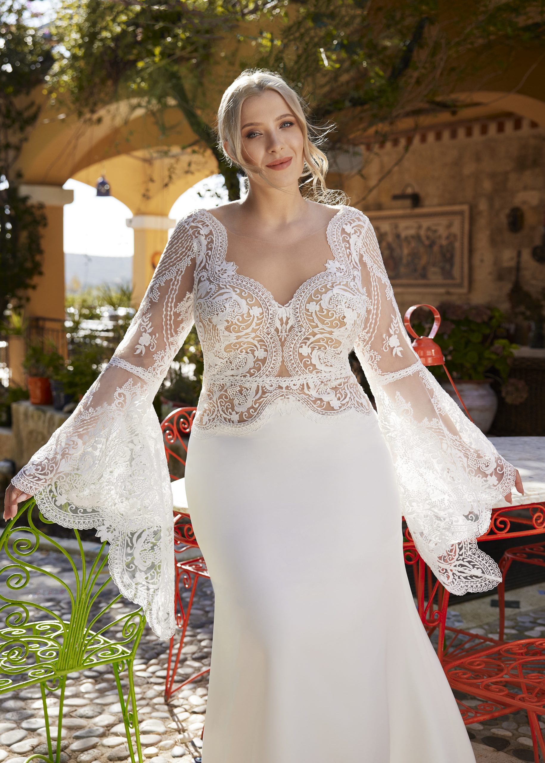 I denna kollektion introducerar Herve Paris en BOHO vintage destination för varje brud som gillar denna stil. Antingen om det är en lång klänning, en sexig klänning med transparent tyg eller en sofistikerad klänning med spetsdetaljer kommer den att vara förtjusande på varje brud som väljer en BOHO-stil. Varje modell från denna enastående kollektion från franska Herve Paris får alla att häpna. Coola Boho klänningar, lätta med fin spets och andra tyger.