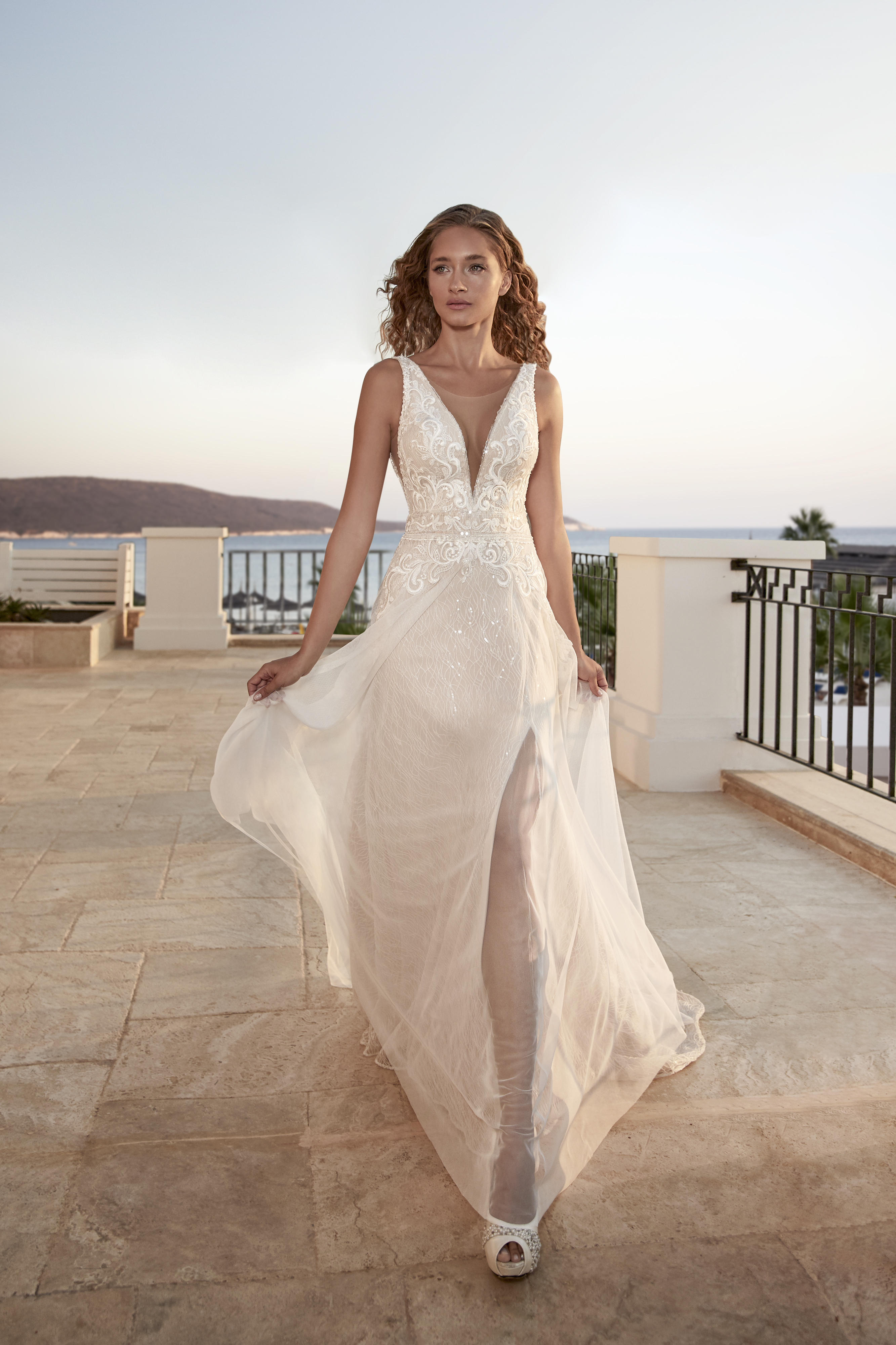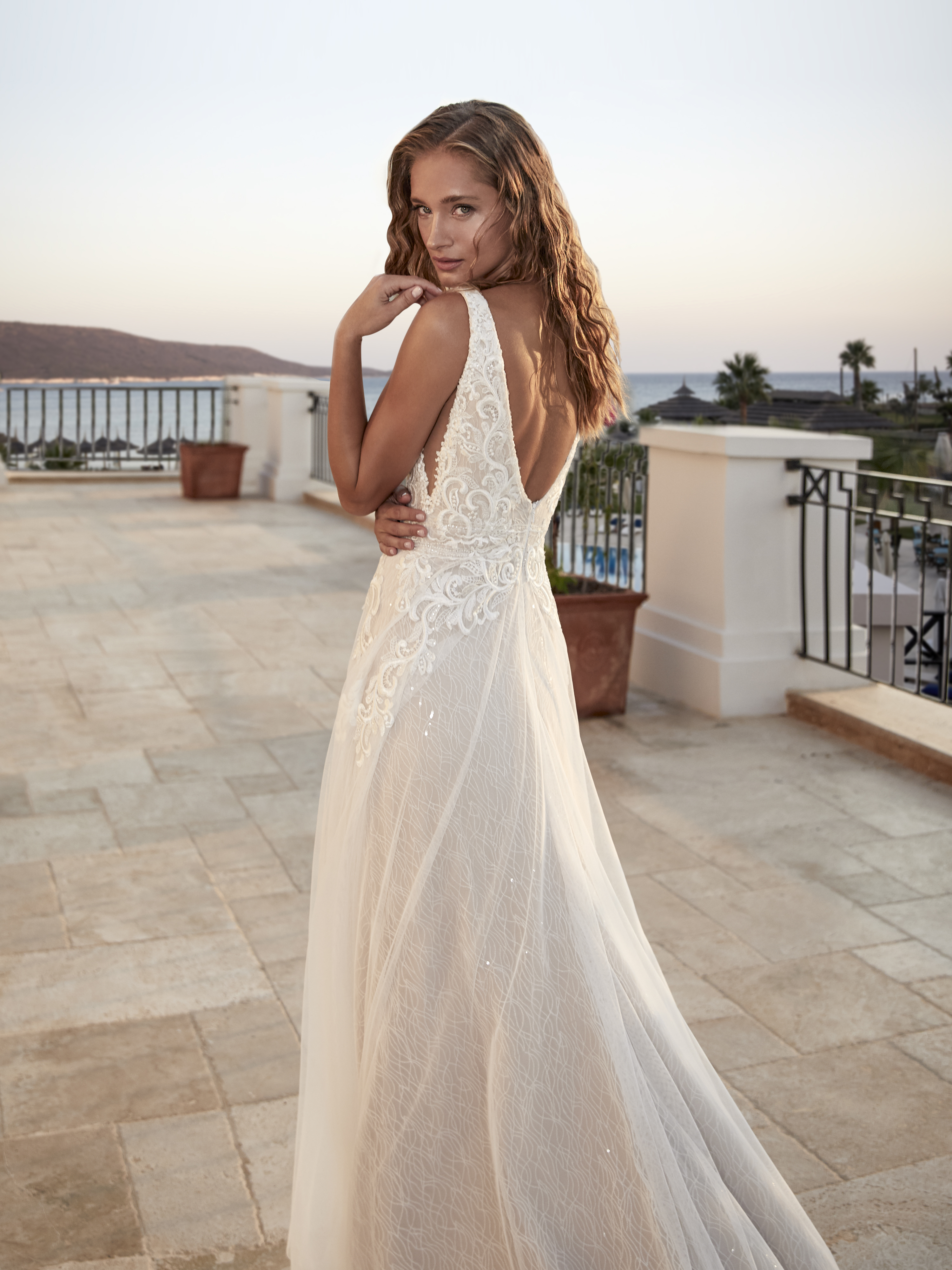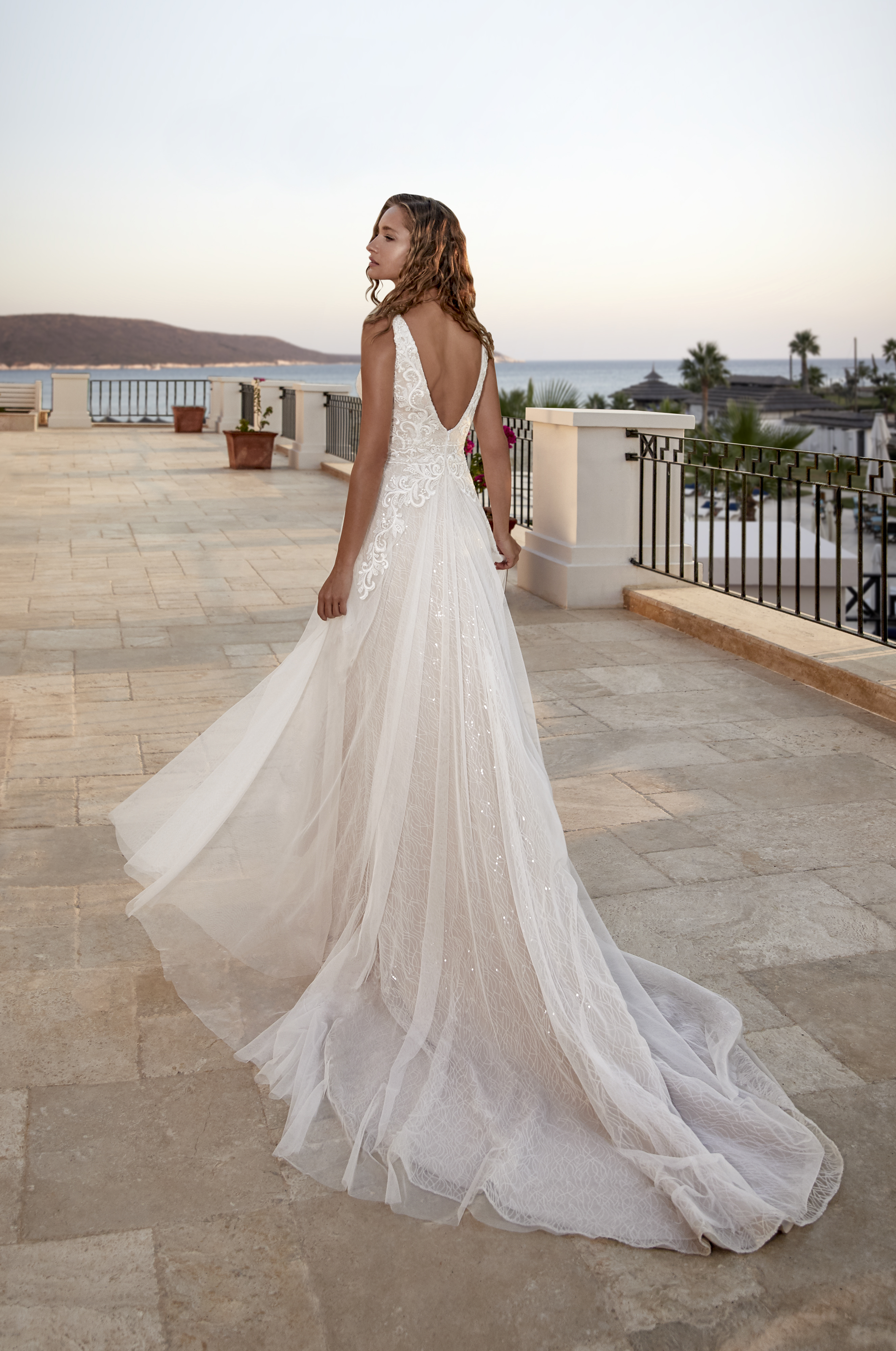 Kollektionen består av tyger som tyll, fransk spets, crepe och chiffong. Självklart ser du även fina brodyrer med paljetter för att ge klänningen en speciell glans. För det första skapas äkta vintage former med en fin snörning, som kompletteras med djup V-formad skurning och djup i ryggen. Dessutom gör det pricken över iet i dessa skapelser av design med fransar.
