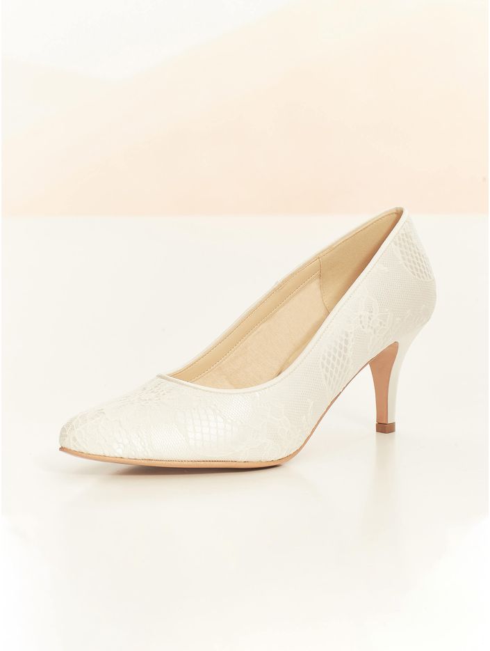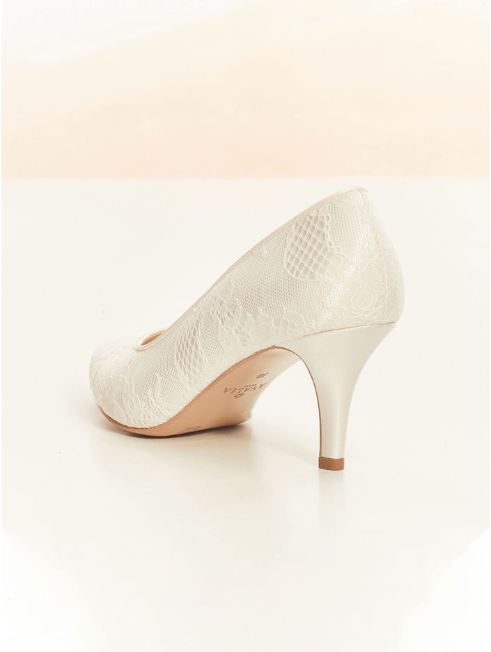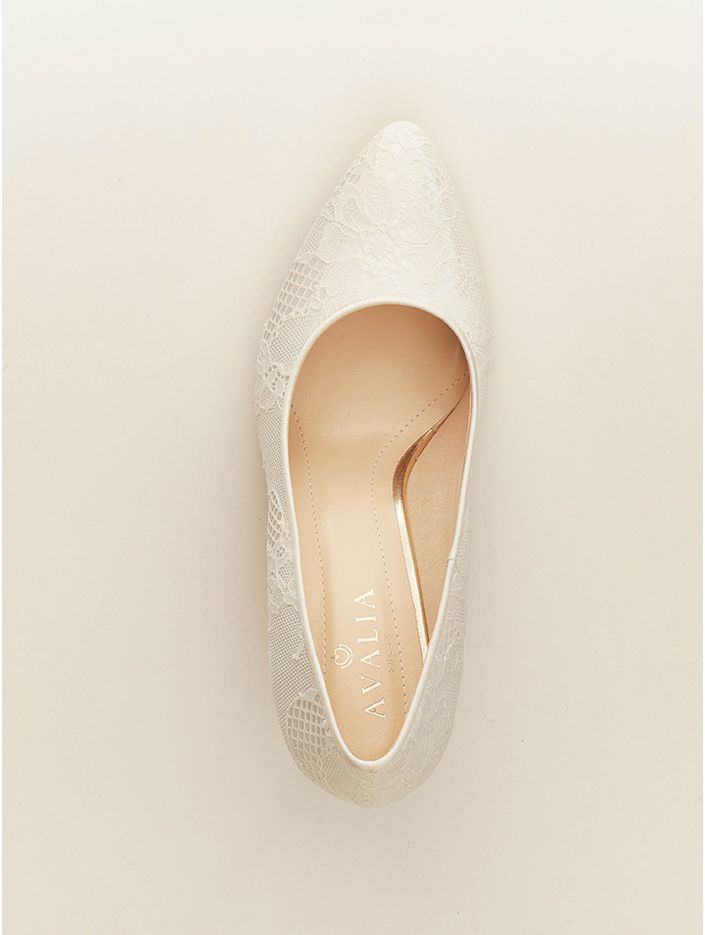 Brudskor från Avalia som är både eleganta och bekväma, perfekta för dig som vill kunna dansa hela natten. Skorna är tillverkade i vacker spets och har en mjuk och bekväm sula med ett inlägg av mjukt skum för extra komfort. Klacken är 7 cm hög och den stabila designen gör skorna behagliga att bära hela dagen. Alla skor är designade och tillverkade inom EU. AVALIA är ett varumärke från Bianco Evento.