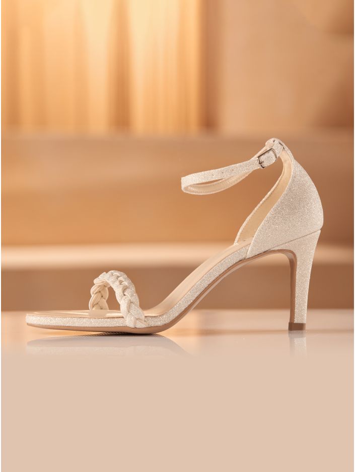 Glittriga brudskor som kombinerar elegans och komfort, perfekta för dig som vill dansa hela dagen och natten. Skorna har en 6 cm hög klack och justerbara remmar för en säker och bekväm passform. Den mjuka skuminnersulan ger extra komfort, och skorna är omsorgsfullt designade i EU och tillverkade i Avalia egen produktionsanläggning.