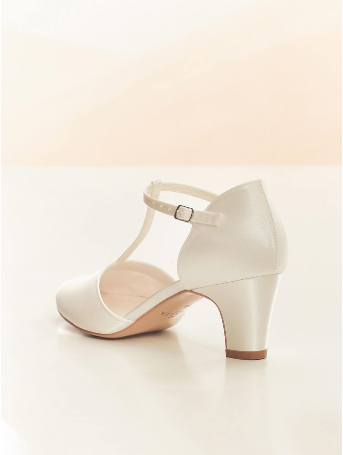 Brudskor som kombinerar elegans och komfort, perfekta för dig som vill dansa hela dagen och natten. Skorna är tillverkade i satin och har en 6 cm hög klack samt en justerbar T-rem som ger en stabil och bekväm passform. Den mjuka skuminnersulan ger extra komfort, och alla skor är omsorgsfullt designade i EU och tillverkade i Avalia egen produktionsanläggning.