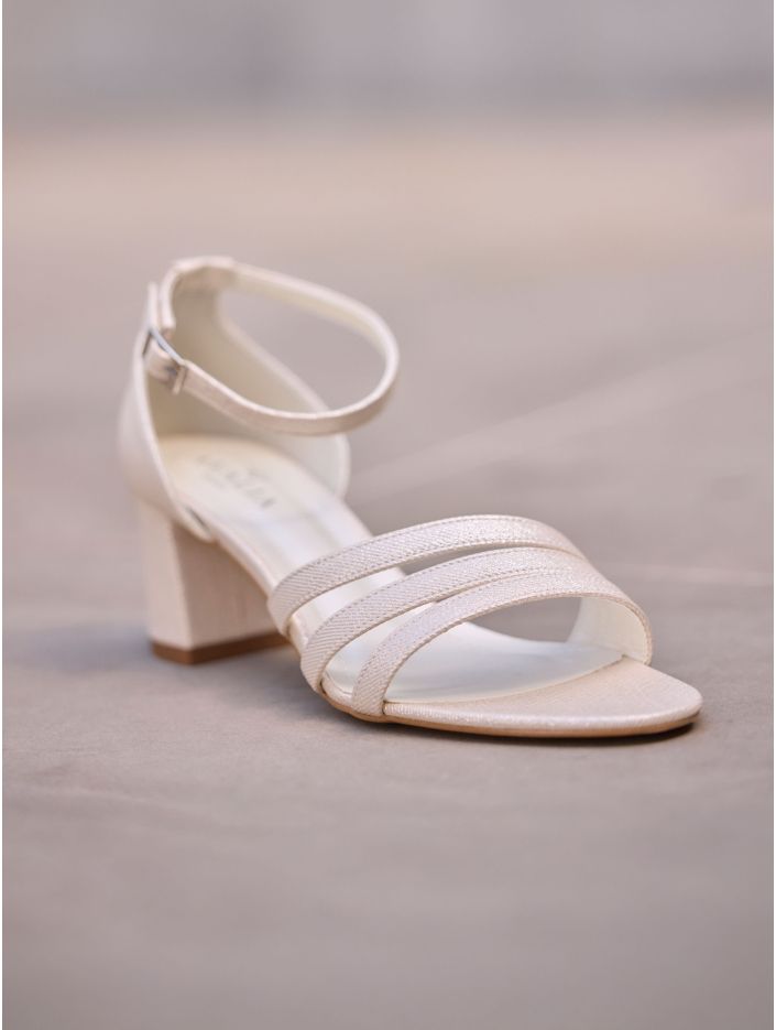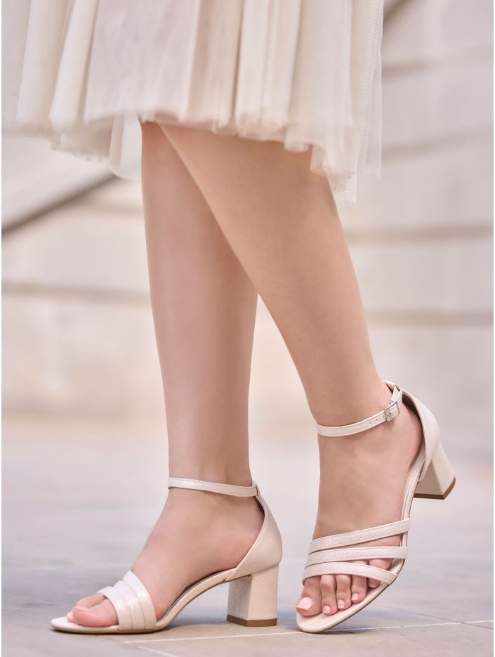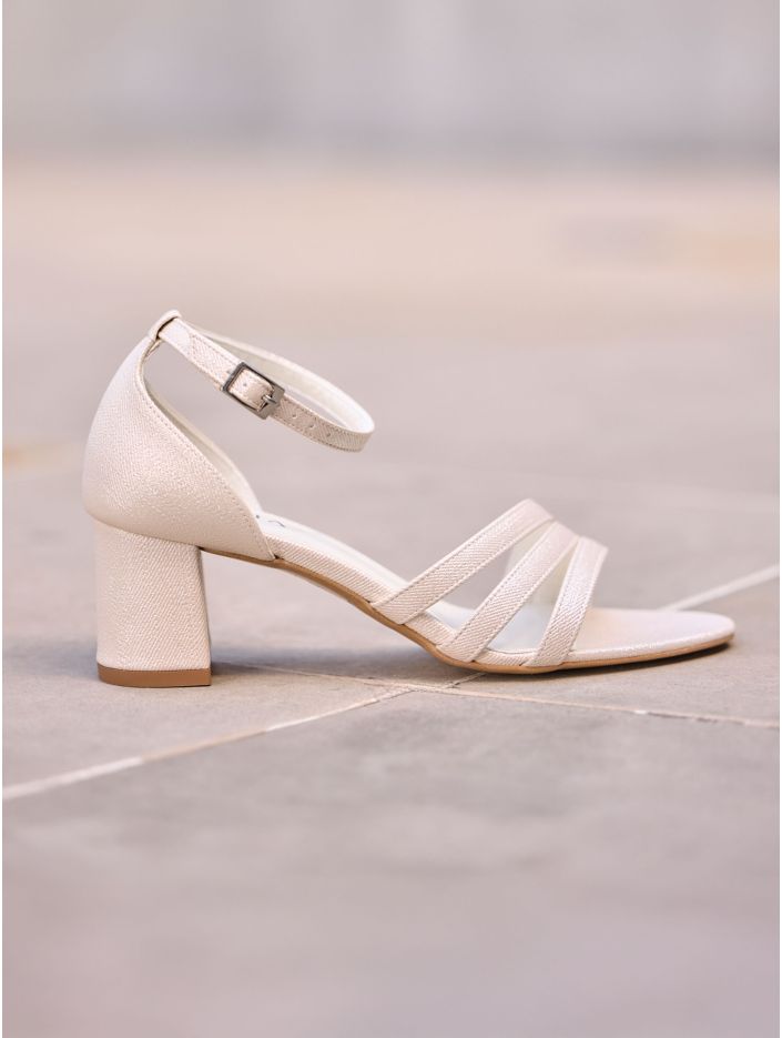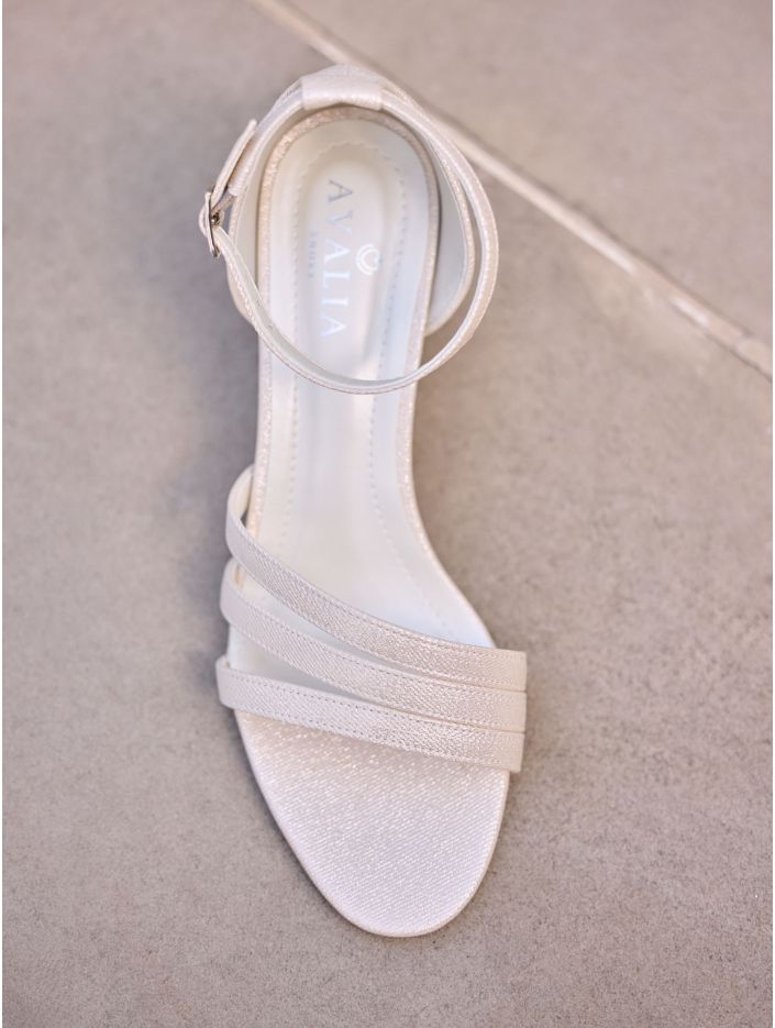 Brudsandaler i syntetmaterial som kombinerar stil och komfort. Skorna har en bred 6 cm hög klack, justerbara spännband för en perfekt passform och en mjuk skuminnersula för extra komfort. Alla skor är omsorgsfullt designade i EU och tillverkade i Avalias egen produktionsanläggning.