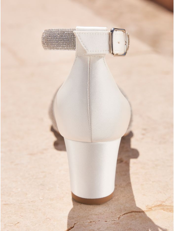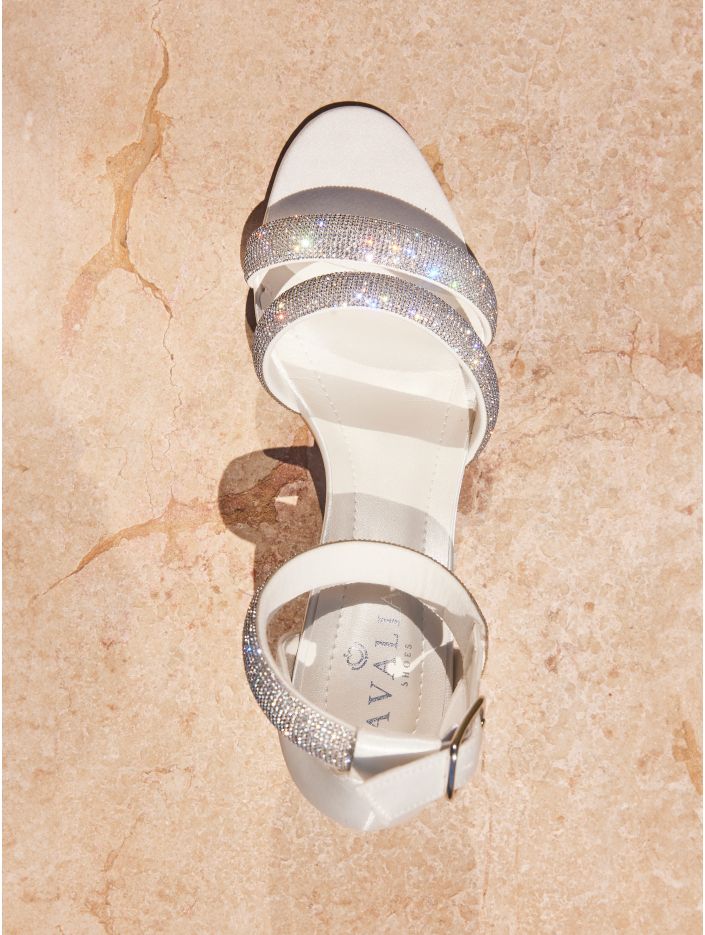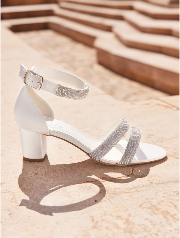 Eleganta sandaler i högkvalitativ satin med en stabil 6 cm hög blockklack. Skorna har justerbara remmar för perfekt passform, en mjuk skuminnersula för extra komfort och är prydda med vackra cirkoner som ger en exklusiv känsla. Omsorgsfullt designade i EU och tillverkade i Avalias egen produktionsanläggning.