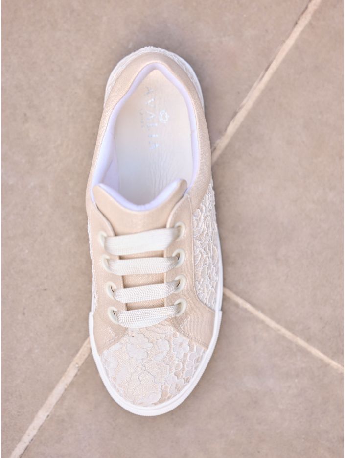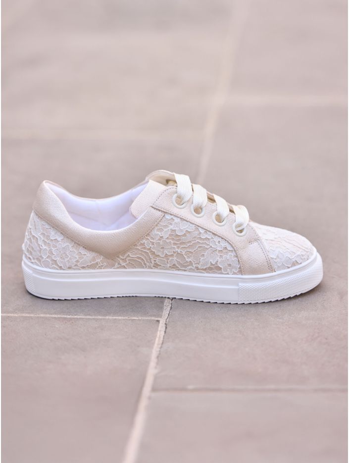 Brudsneakers i spets och syntetmaterial som kombinerar stil och komfort. Skorna har justerbara snörningar, en 2,5 cm hög sula och en mjuk skuminnersula för extra komfort. Alla skor är omsorgsfullt designade i EU och tillverkade i vår egen produktionsanläggning.