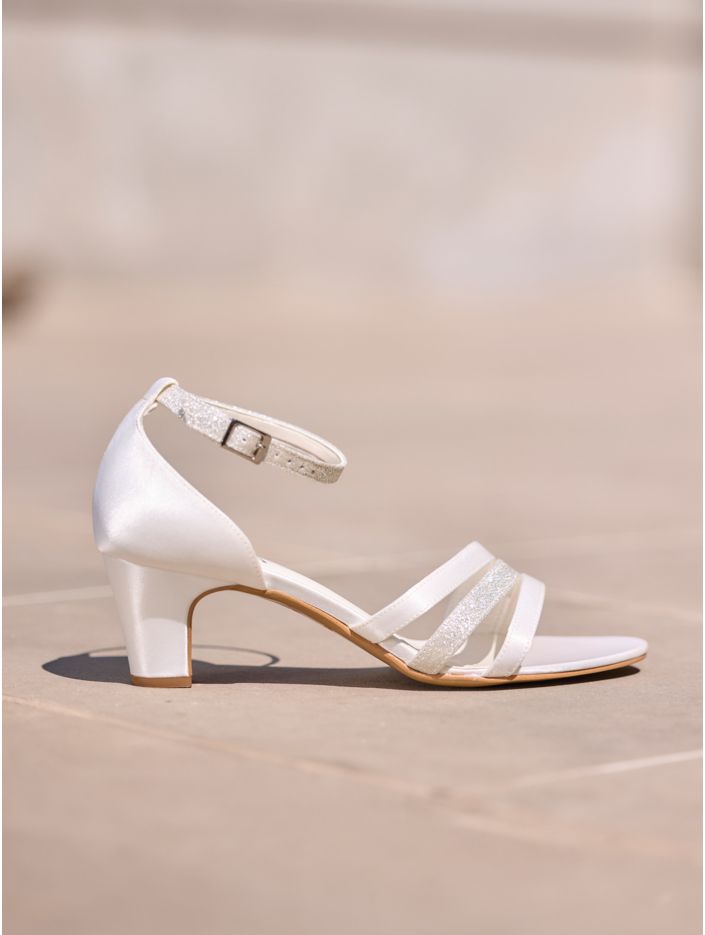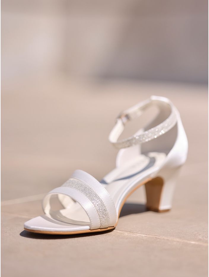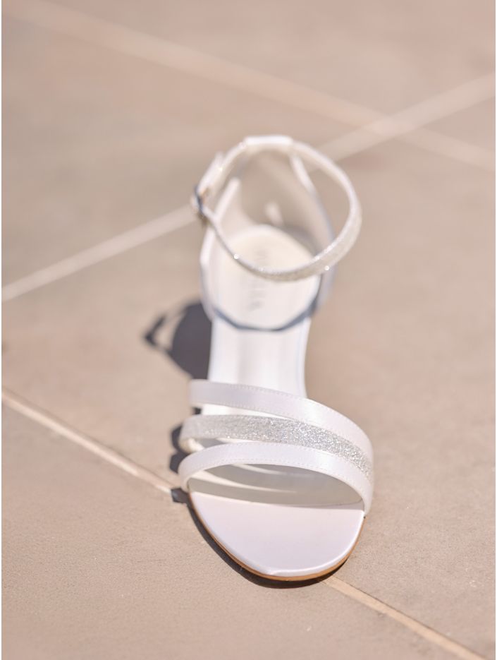 Brudsandaler i satin som kombinerar elegans och komfort. Skorna är prydda med glitterdetaljer, har en 6 cm hög klack och ett smalt spännband för en perfekt passform. Den mjuka skuminnersulan ger extra komfort. Alla skor är omsorgsfullt designade i EU och tillverkade i Avalias egen produktionsanläggning.